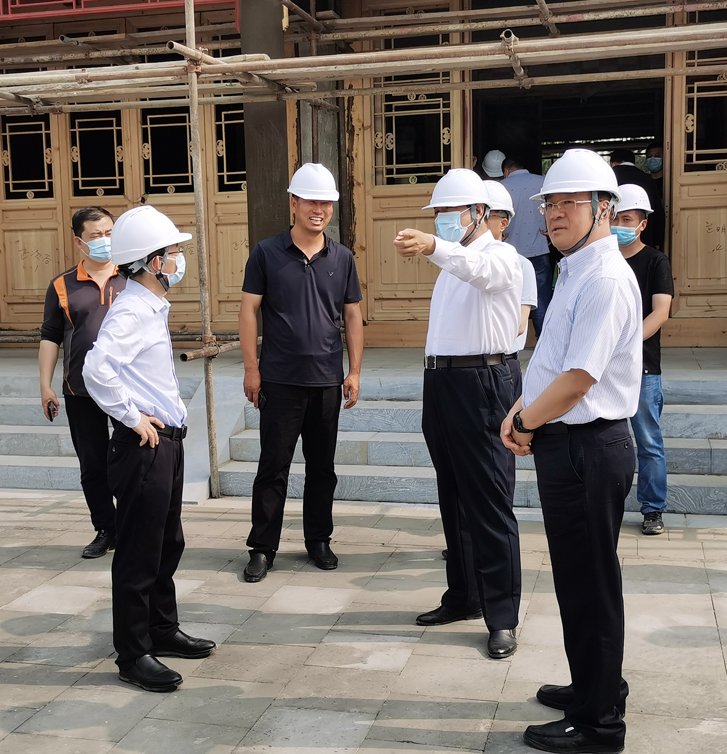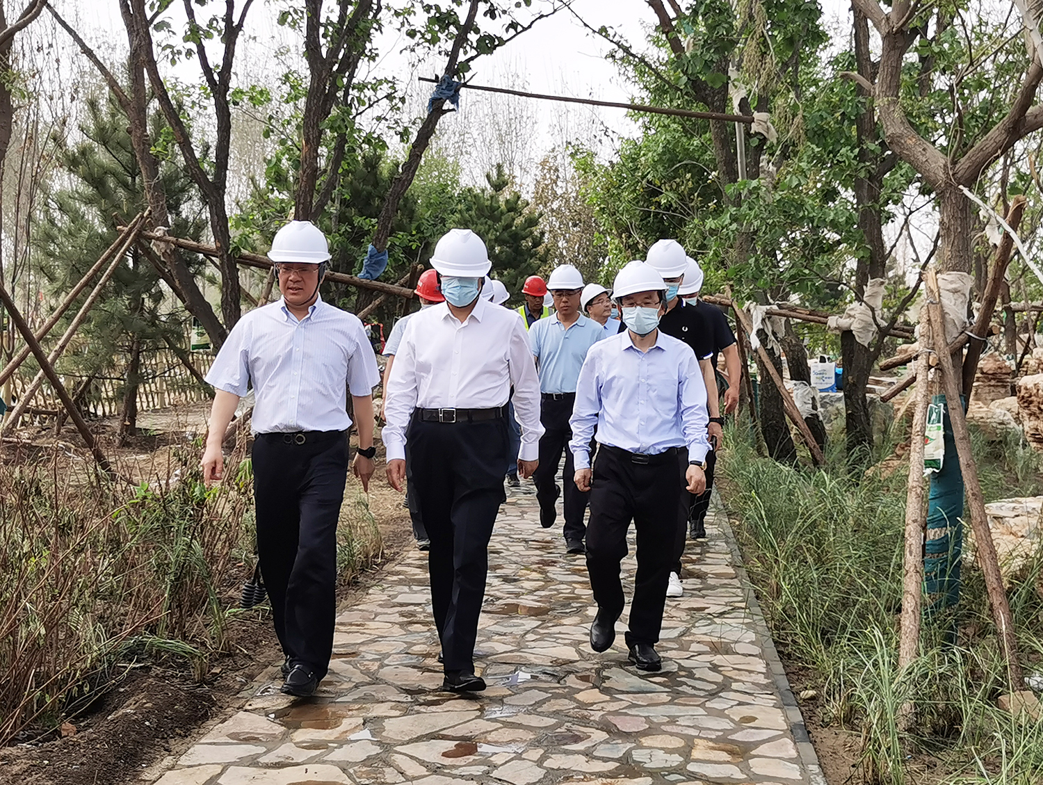張建軍董事長向吳清海書記匯報了雄安郊野公園承德園的規(guī)劃設(shè)計、功能布局、工程建設(shè)等有關(guān)情況后,吳清海書記一行實地踏查了承德展園施工現(xiàn)場。