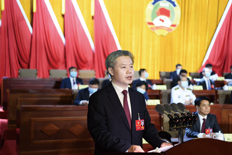 劉文勤作市政協(xié)常委會(huì)工作報(bào)告。本網(wǎng)記者陳琦嘉李國(guó)強(qiáng)攝