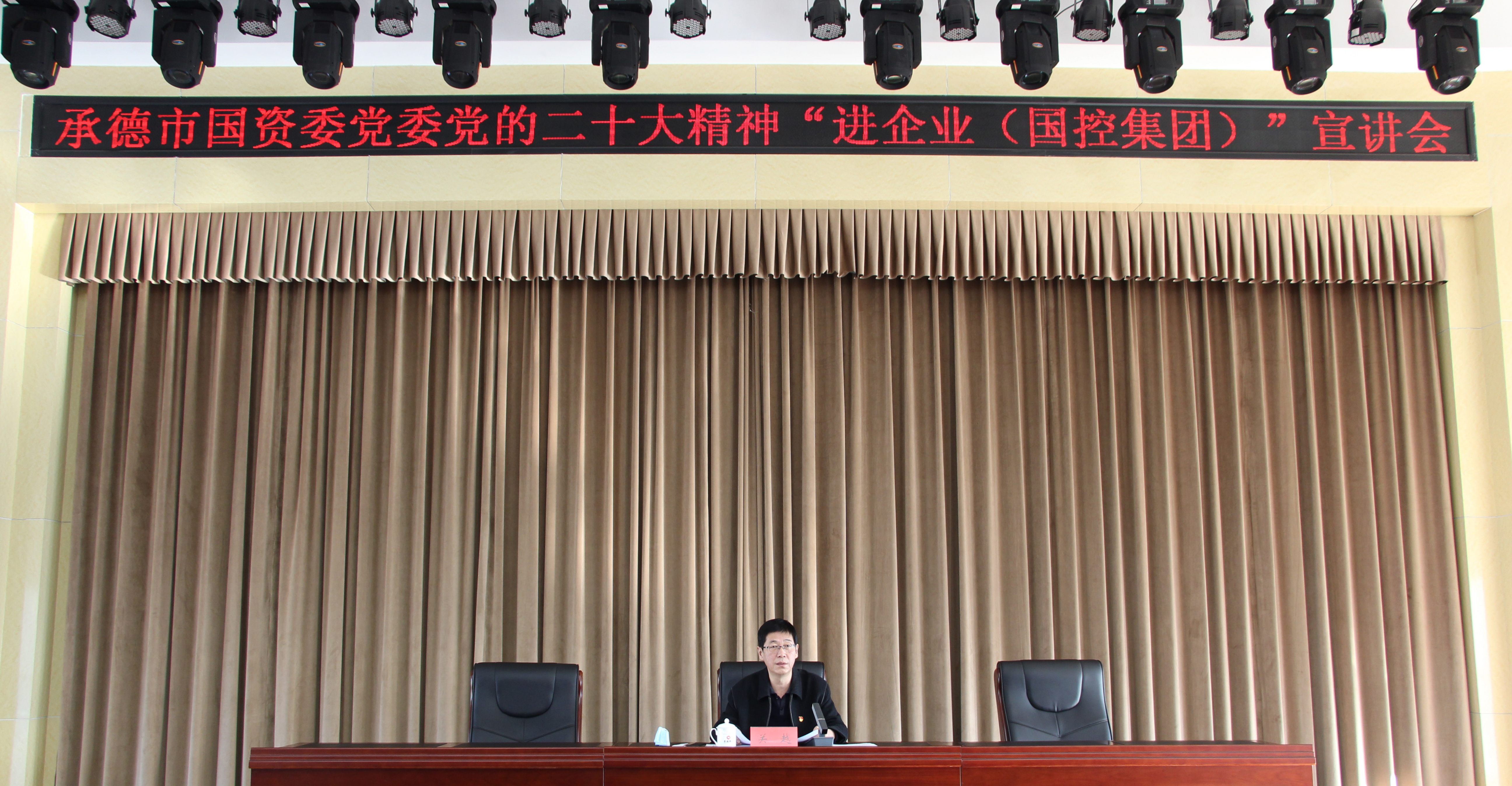2022年12月9日上午,承德市國資委黨委專職副書記、二級調(diào)研員關(guān)越同志、市國資委機(jī)關(guān)黨委專職副書記侯明哲同志到國控集團(tuán)開展了黨的二十大精神“進(jìn)企業(yè)”宣講報告會。國控集團(tuán)全體班子成員、中層干部、一線職工代表參加會議。
