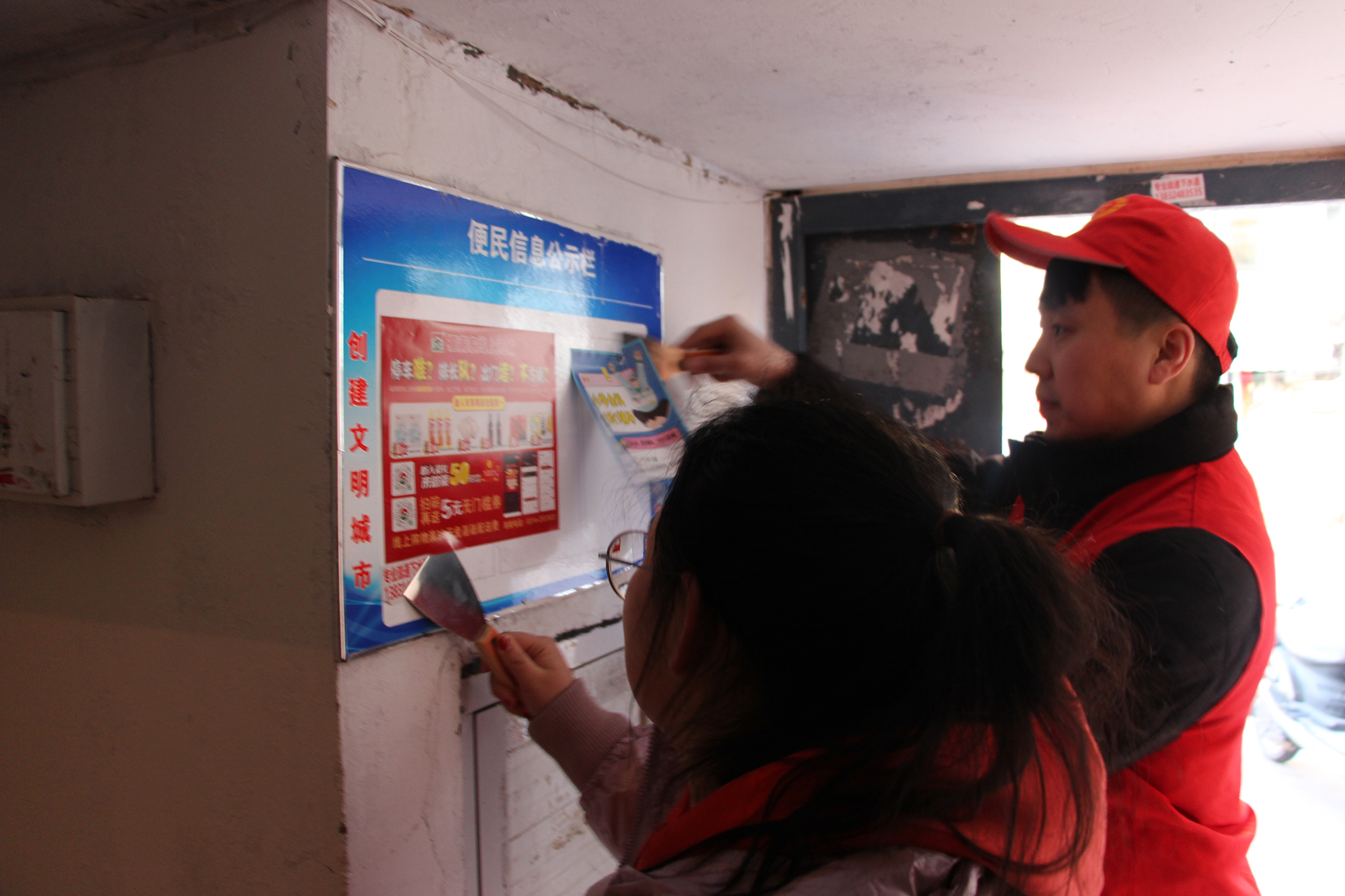 會后,集團(tuán)公司與會龍山社區(qū)積極對接,安排人員分批次深入會龍山社區(qū),與社區(qū)書記現(xiàn)場溝通并安排部署幫建工作。志愿者們向社區(qū)居民發(fā)放黨的二十大精神宣傳手冊、對轄區(qū)內(nèi)消防設(shè)施進(jìn)行清潔檢查、單元樓內(nèi)外非法廣告進(jìn)行清除、對非機(jī)動(dòng)車進(jìn)行合理擺放、樓內(nèi)外堆放垃圾雜物上門進(jìn)行溝通,向居民講解雜物堆積的潛在危害,進(jìn)一步提升了社區(qū)居民的文明意識。